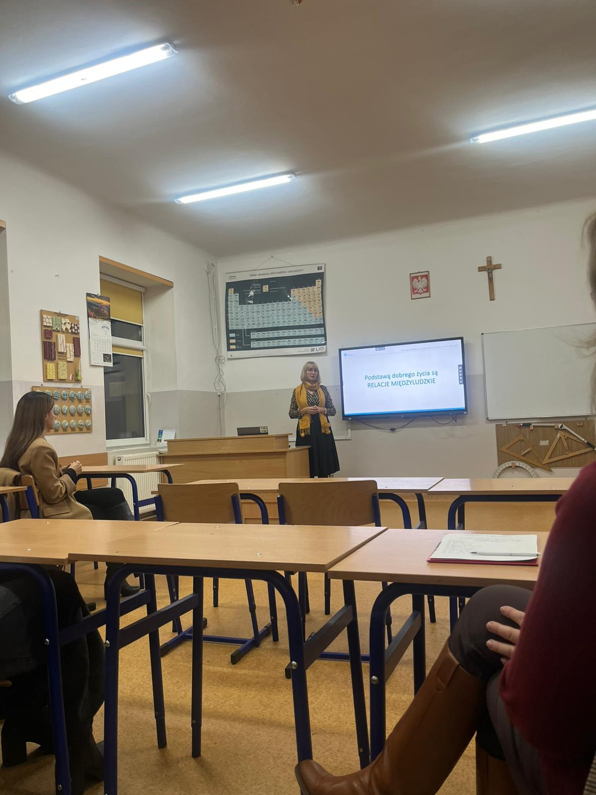 Dnia 21 listopada odbyło się spotkanie dla rodziców i nauczycieli z Panią Haliną Czerwińską - prezesem Fundacji OSTOJA, psychologiem, pedagogiem, mediatorem, edukatorem, trenerem profilaktyki zintegrowanej, specjalistą ds. terapii emocjonalnej. Tematem spotkania było: „Hejt, prowokacje i wyzwania w Internecie – zagrożenia i odpowiedzialność młodych użytkowników”.