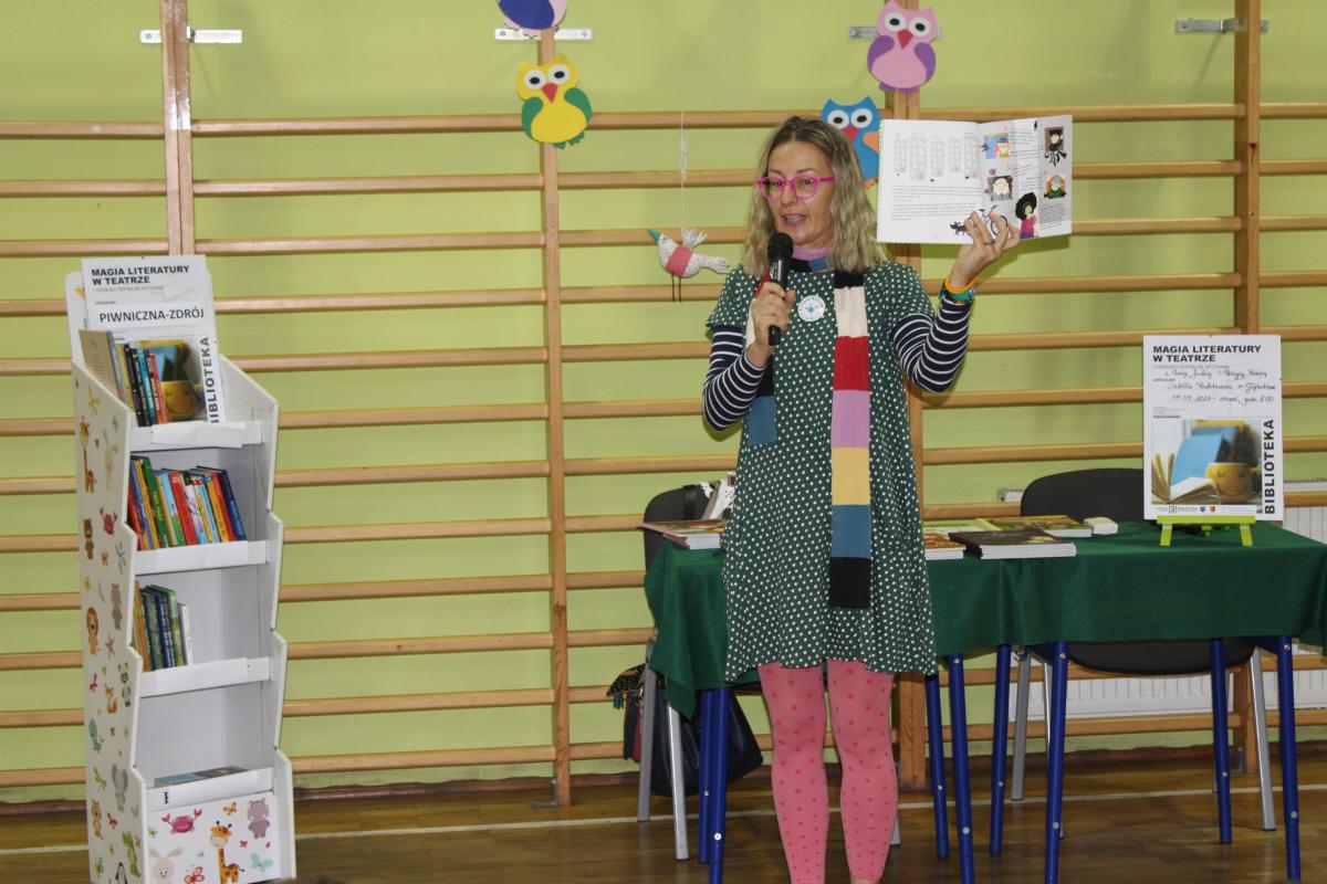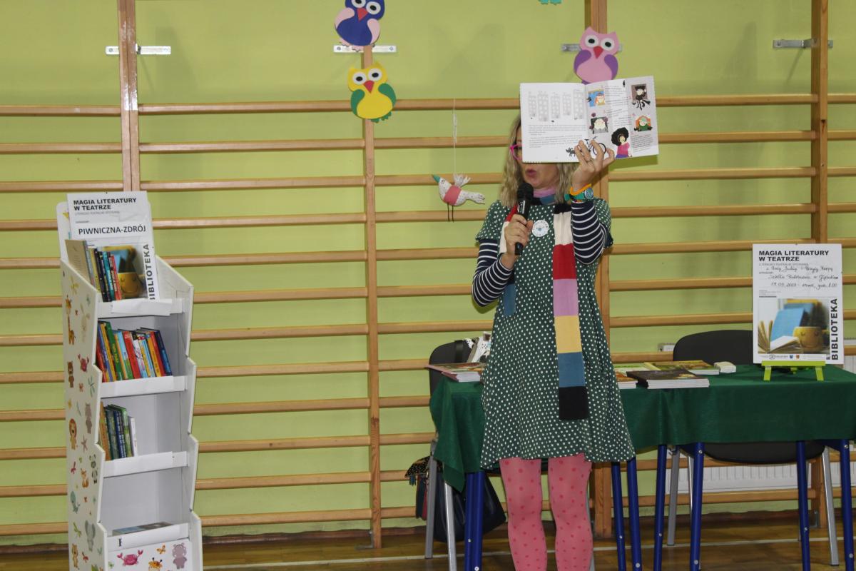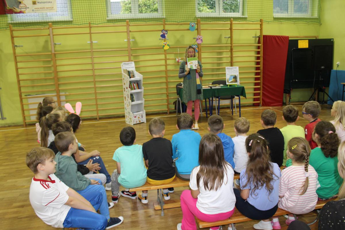 Dnia 19 września 2023r. dzięki współpracy z Powiatową Biblioteką w Starym Sączu i Biblioteką Publiczną w Piwnicznej gościliśmy w naszej szkole Panią Elizę Piotrowską- autorkę książek dla dzieci. Autorka i ilustratorka w niezwykle barwny sposób wprowadziła dzieci w świat swoich książek. Dziękujemy za to pełne humoru i inspirujących zabaw spotkanie, które jeszcze bardziej zachęciło najmłodszych do przeżywania kolejnych przygód z bohaterami czytanych książek.